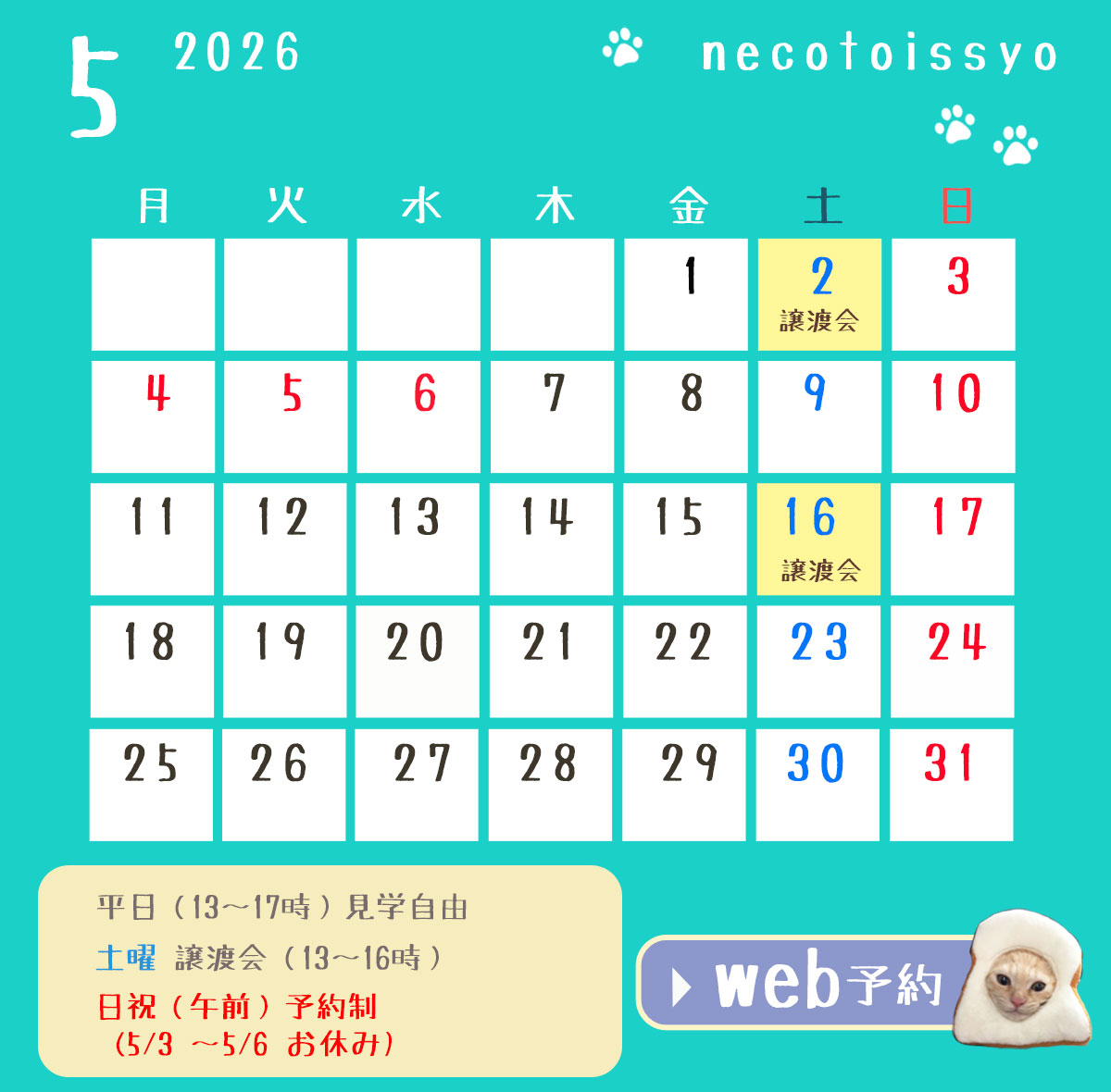 (土曜)譲渡会(13〜16時)見学自由