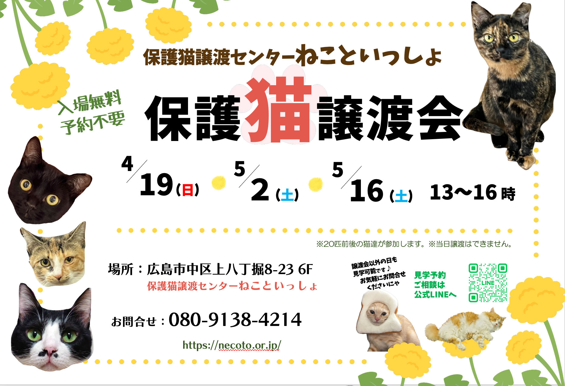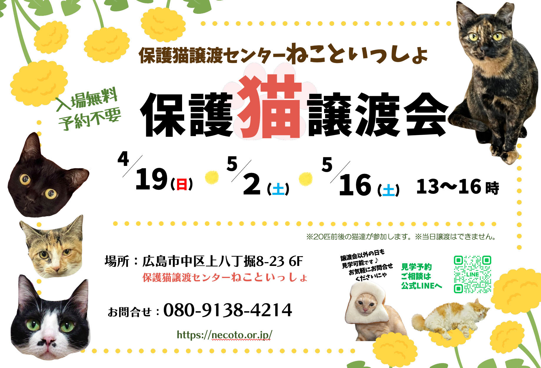 猫をお迎えしたい方はもちろん、保護猫のために何かしたい、という方もぜひお立ち寄りください。